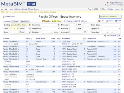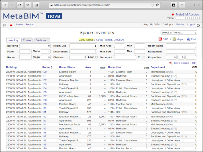 Rooms, square feet, usage, departments, occupancy, equipment, utilization reports |
