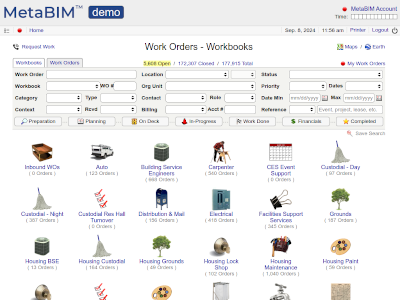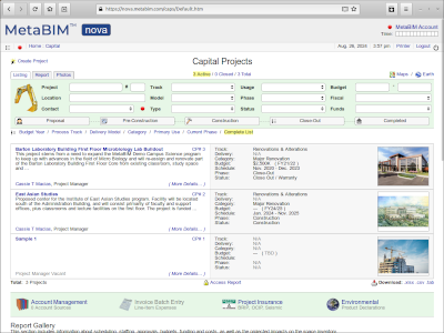 Find and manage data on space, occupants, programs, projects, maintenance by building. |