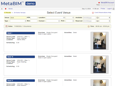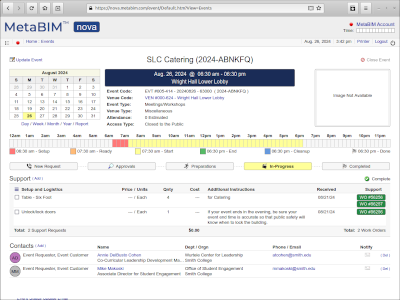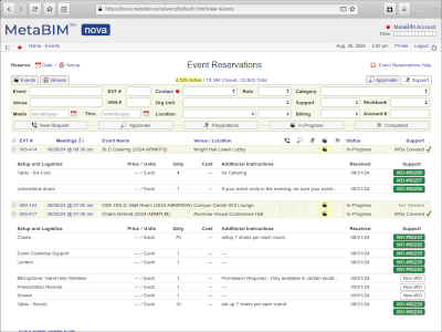 Venues, requests, approvals, reservations, support, work orders, utilization, reporting. |
