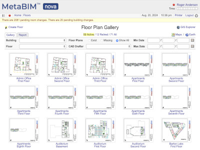 Floor plans, square feet, rooms, occupants, equipment, programs, projects, maintenance. |