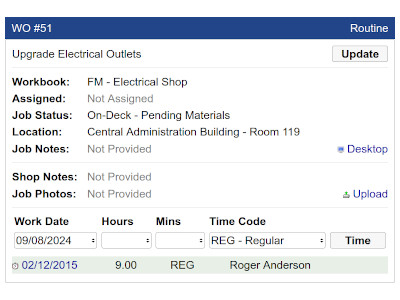 Manage my work. Track time on work orders. Update status, shop notes and take photos. |