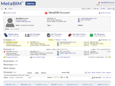 Customer portal, work requests, job status, key requests, space, events and projects. |