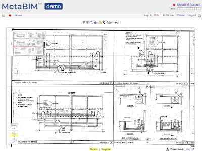 Browse plan sets. Click-to-zoom, pan and download for markup, redline and reload. |