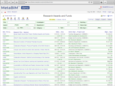 Awards, funding, investigators, lab space, assignments, departments, indirect cost |